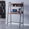 Escritorio Morales con un acabado liso y cálido que resalta las vetas naturales del material. Sobre la superficie del escritorio se encuentra una repisa sencilla pero funcional, colocada justo en el centro, perfecta para sostener libros o pequeños objetos decorativos.