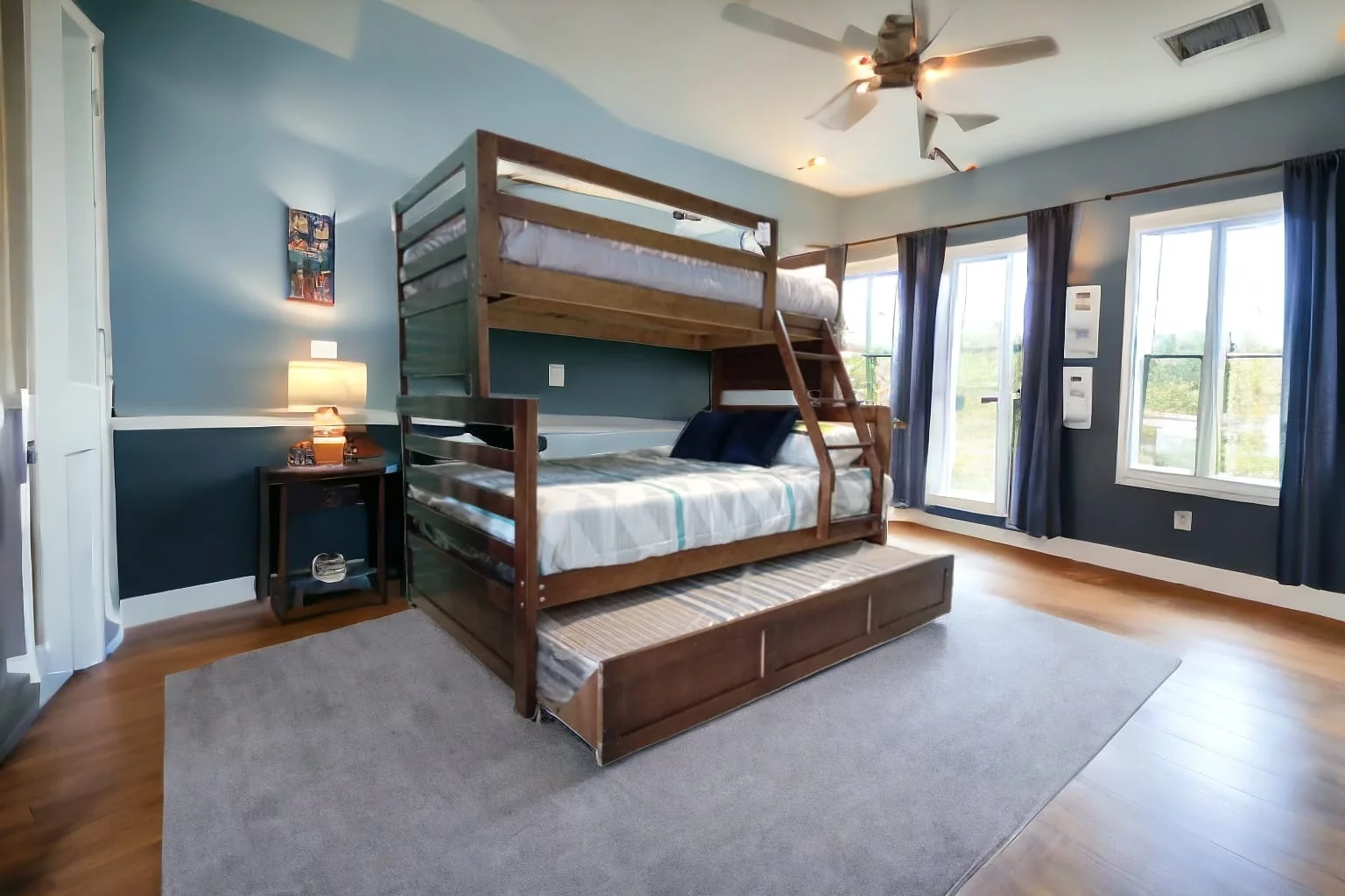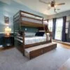 Nuestra Litera cuenta con un diseño funcional y práctico. Está compuesta por dos camas tamaño individual: la cama superior, que se encuentra elevada, y la cama inferior. Además, mencionas que hay una cama adicional en la parte de abajo que se puede sacar y guardar, ideal para recibir visitas.