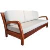 El love seat Bali está fabricado con madera de parota. Estructura de madera: Los brazos y la base del asiento están hechos de madera maciza de parota, una madera conocida por su resistencia, durabilidad y vetas atractivas. Los brazos tienen un diseño curvado, aportando una sensación de fluidez y elegancia. Los cojines del asiento y el respaldo están tapizados en una tela de color BEIGE, que contrasta bien con el tono cálido y oscuro de la madera. El diseño es moderno y minimalista, con líneas limpias que se combinan con las curvas naturales de la madera. Las patas son robustas, lo que proporciona una estructura sólida.