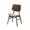 NUESTRA SILLA FABRICADA CON MADERA DE TZALAM EN ACABADO SEMI MATE EN TONO NOGAL, QUE PUEDE APRECIARSE EN LA ESTRUCTURA CURVA DE SUS PATAS; CON UN TAPIZ DE FINA TELA EN COLOR BEIGE QUE LE DA UN TOQUE RESIDENCIAL AL COMEDOR.